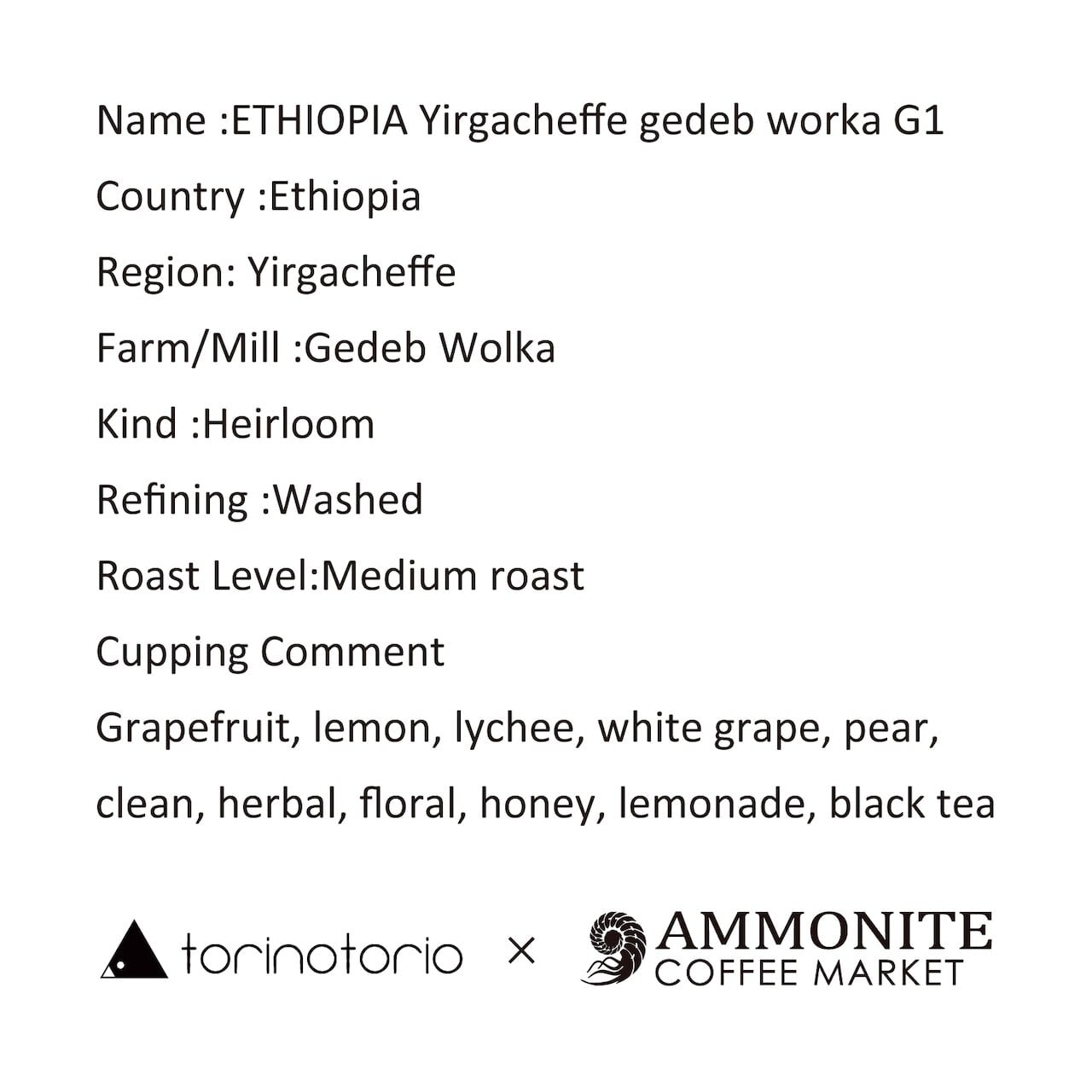 ETHIOPIA- Yirgacheffe gedeb worka G1/ エチオピア イルガチェフェ ゲデブ ウォルカ:2個
